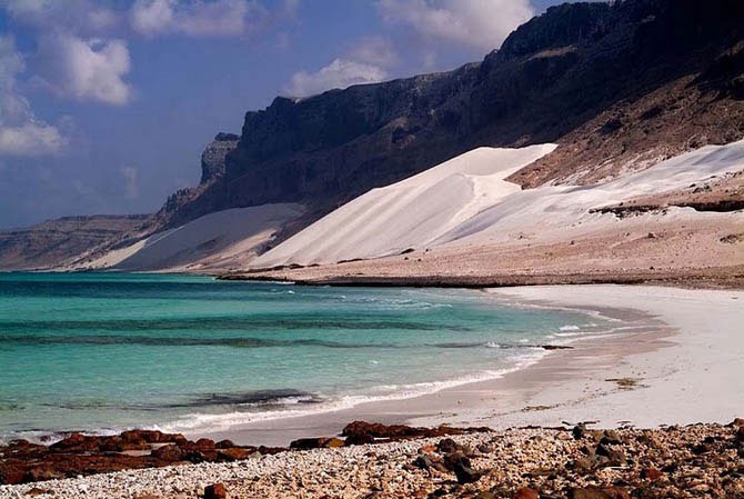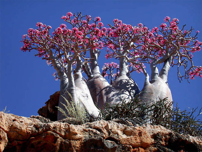 Несмотря на резкий, горячий и сухой климат здесь процветает удивительная растительная жизнь. Остров Сокотра расположен в 250 километрах от Сомали и в 340 от Йемена. Широкие песчаные пляжи плавно переходят к известняковым плато с множеством пещер и горам высотой до 1525 метров. Название Сокотра переводиться с Санскрита, как Остров Счастья. И с этим вполне можно согласиться – сумасшедшее ботаническое очарование соседствует здесь с тишиной, изоляцией и огромными тихими пляжами.